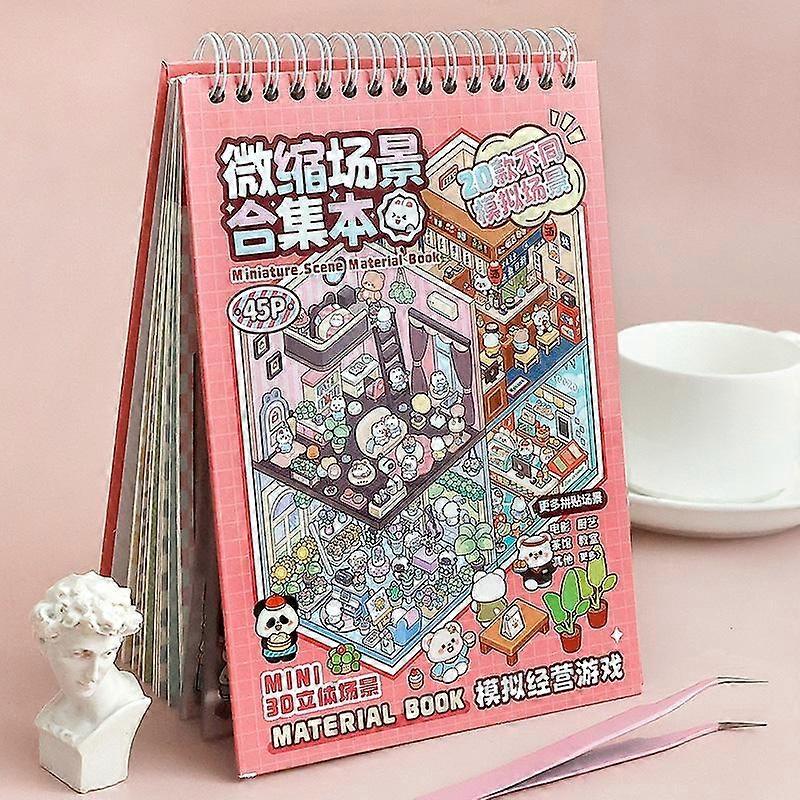 Miniature Scene Collection Book with 20pcs Scene Card Paper & 25pcs Sticker & 1 Count Tweezers, 3D DIY Decorative Sticker Book, Gift Wrappin