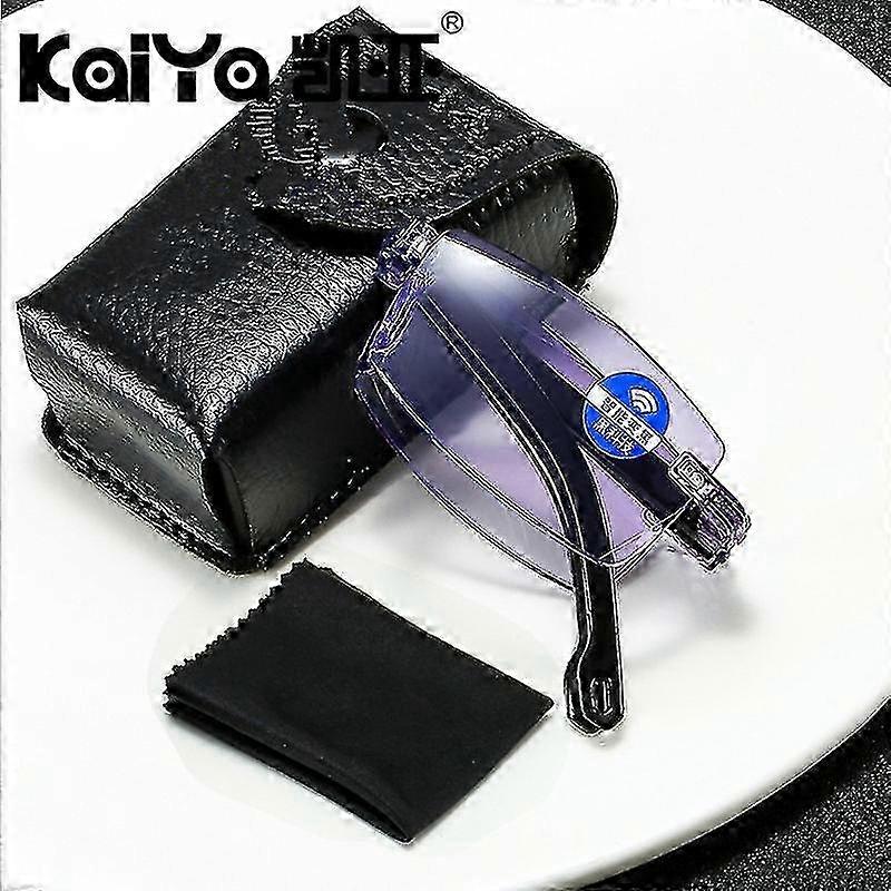 New frameless folding trimmed reading glasses, one-piece reading glasses, blue reading glasses, smart zoom reading glasses, 100