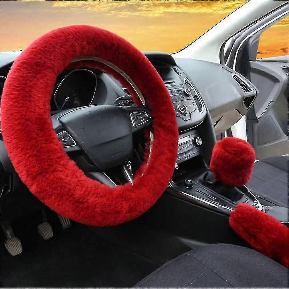 3-Piece Women's Winter Car Set, Plush Steering Wheel & Gear Shift Cover