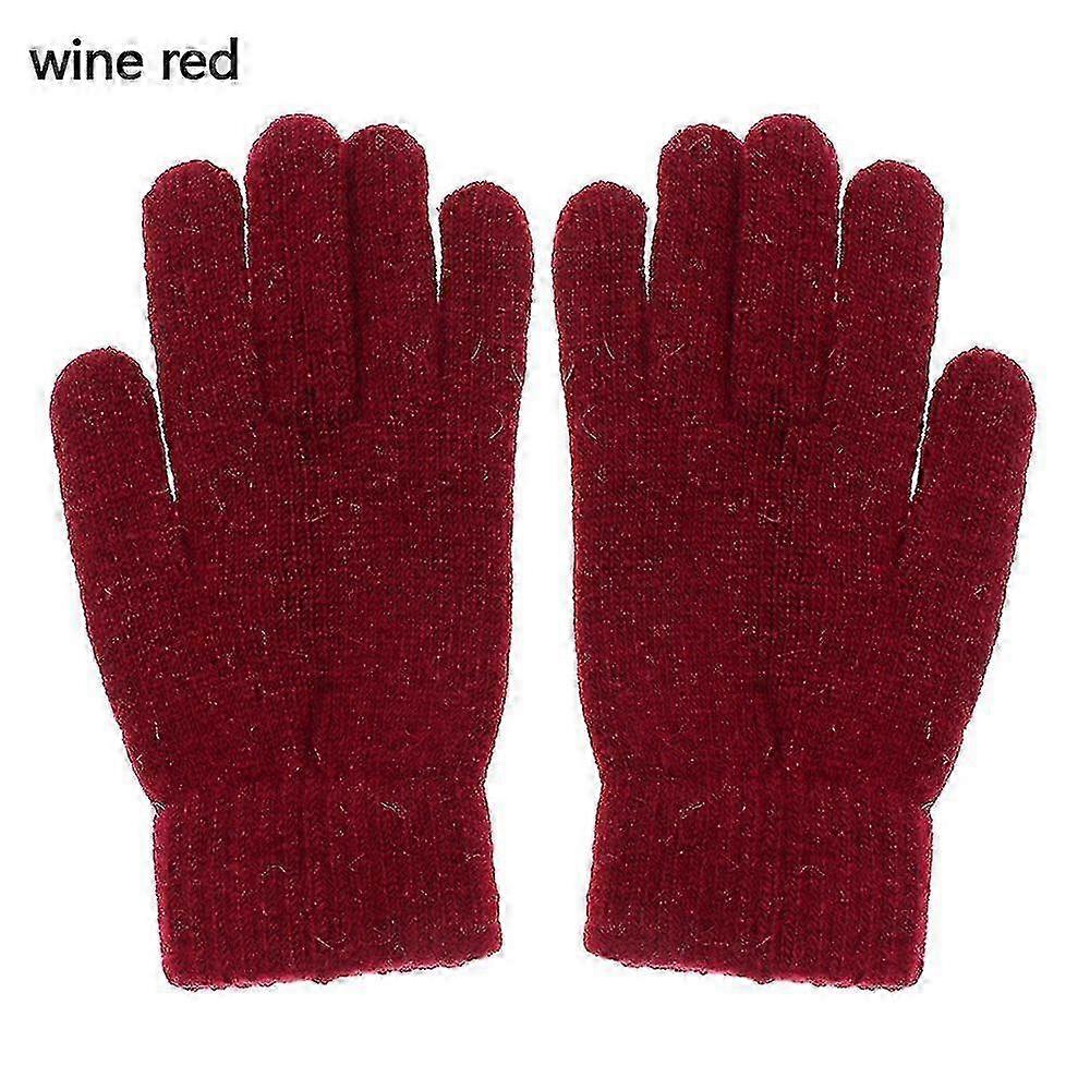 1 pair of winter stretch wool and cashmere cycling/driving gloves, full-finger gloves, mittens, unisex fashion outdoor ski gloves, Wine red