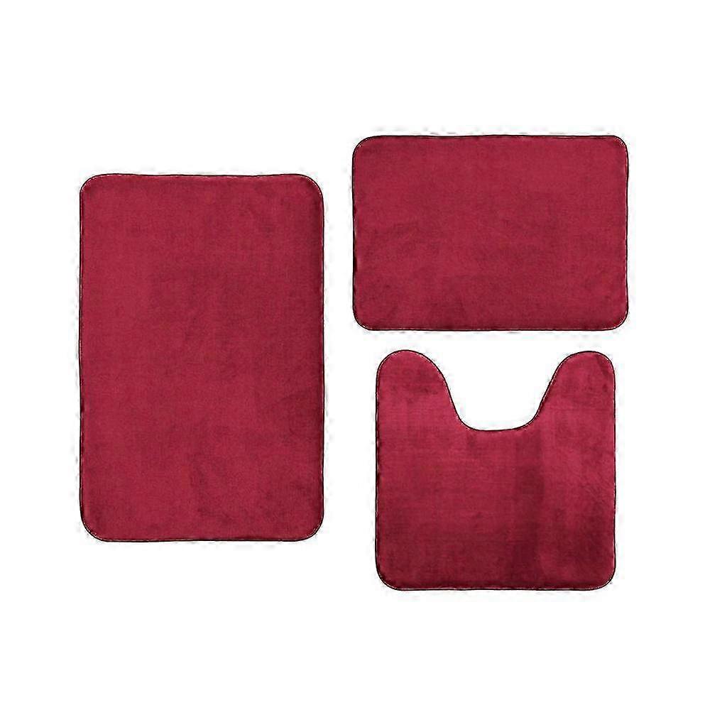 Coral fleece memory foam bathroom rug set (3 pieces), Wine Red