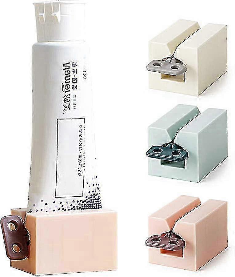 One-piece set of rolling toothpaste dispenser with seat holder and rotating toothpaste dispenser, suitable for bathroom use.