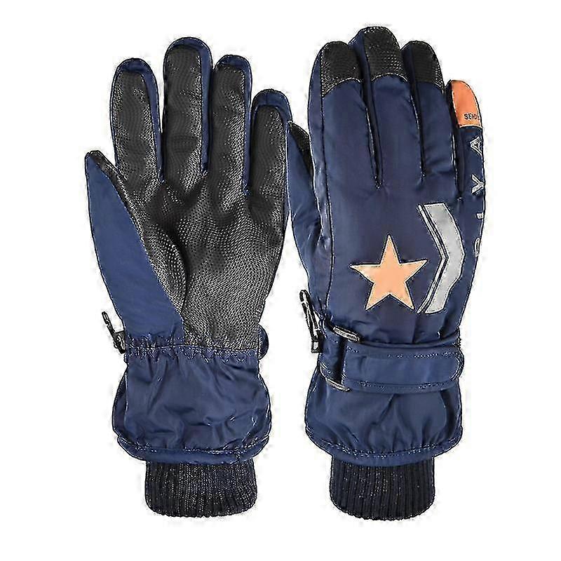 Children's cycling warm extended ski gloves autumn and winter outdoor gloves, navy blue