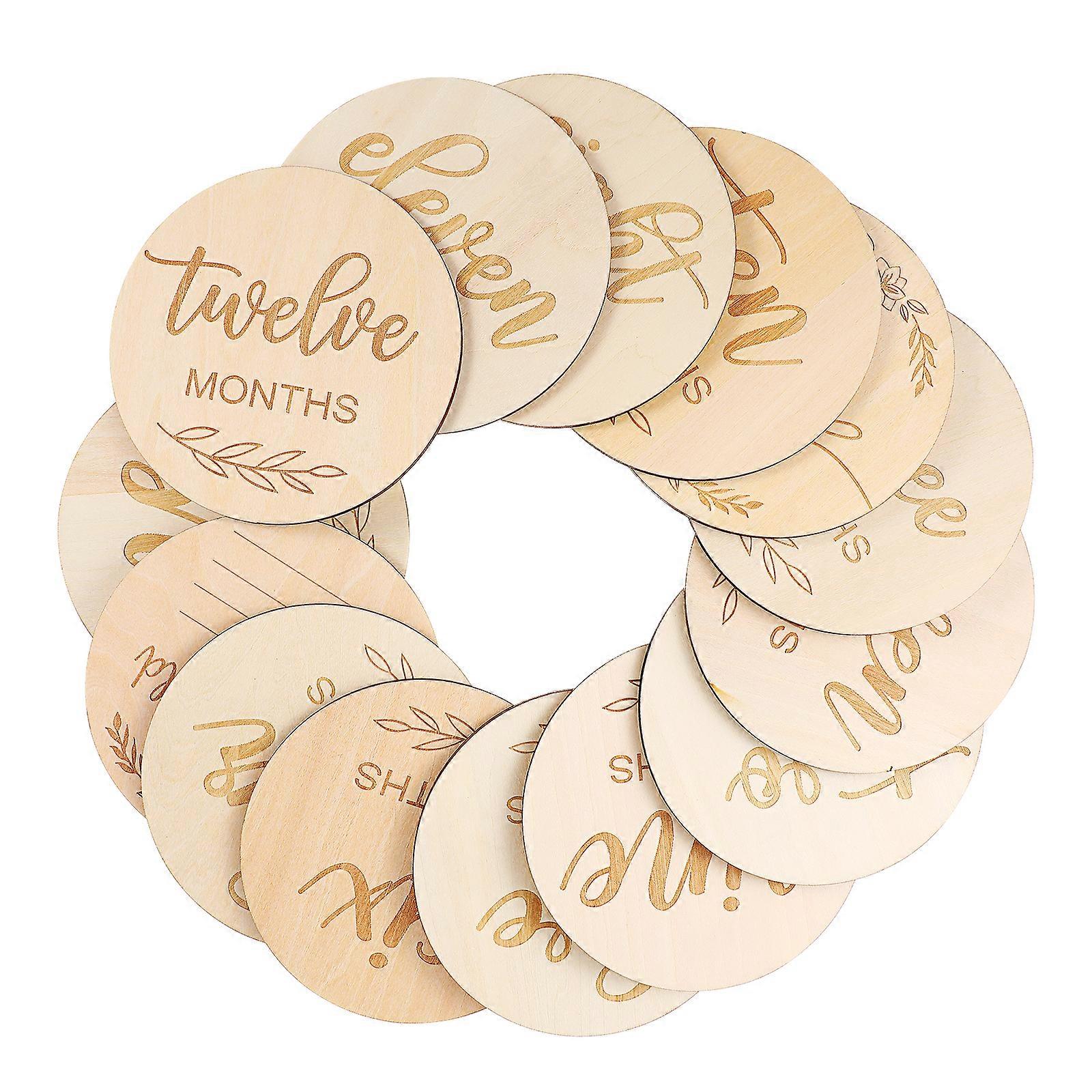 Wooden Baby Month Slices 12 Monthly Milestones for Boy Girl Announcement Props Sign Card Newborn Pennant Photography Eco