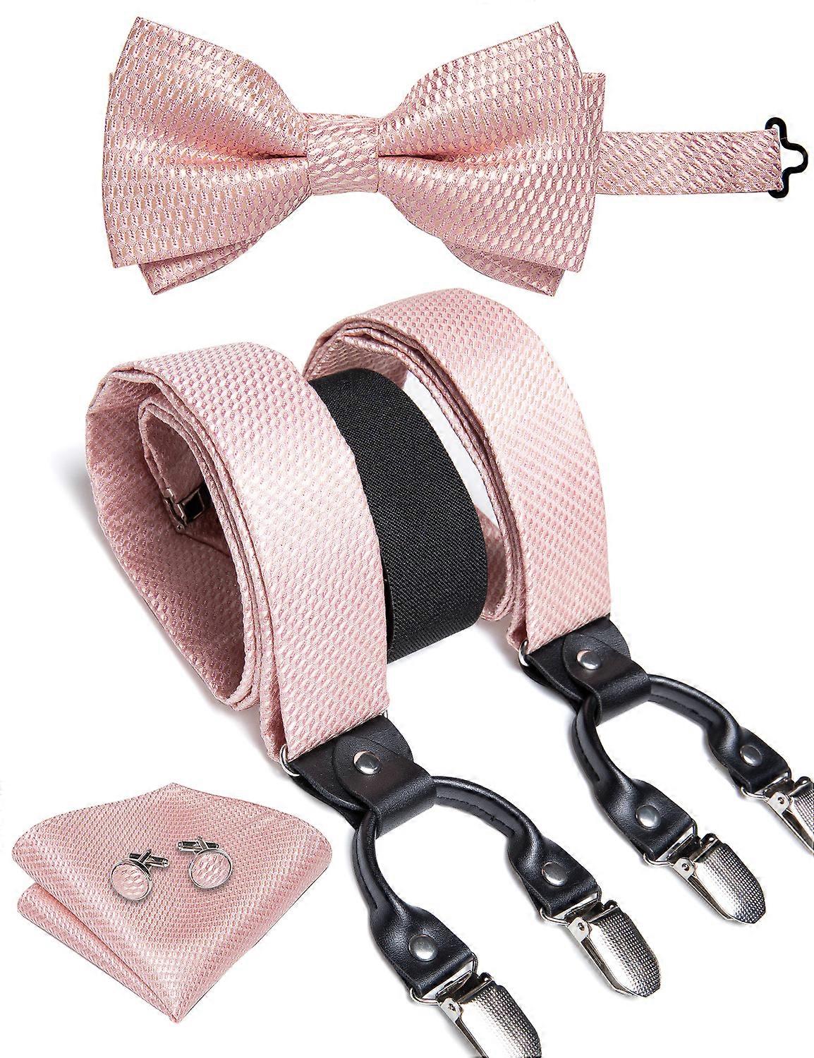 Fashion Silk Men's Suspenders Bowtie Pocket Square 3.5cm Wide Elastic Man Cuffins Set Adjustable Braces for Man Shirt Decor