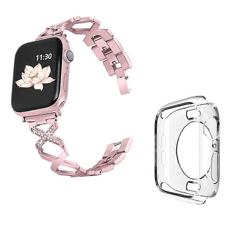 For Apple Watch Series 3/2/1 42mm Hollow X-Shape Shiny Rhinestones Decor Stainless Steel Strap+Trans