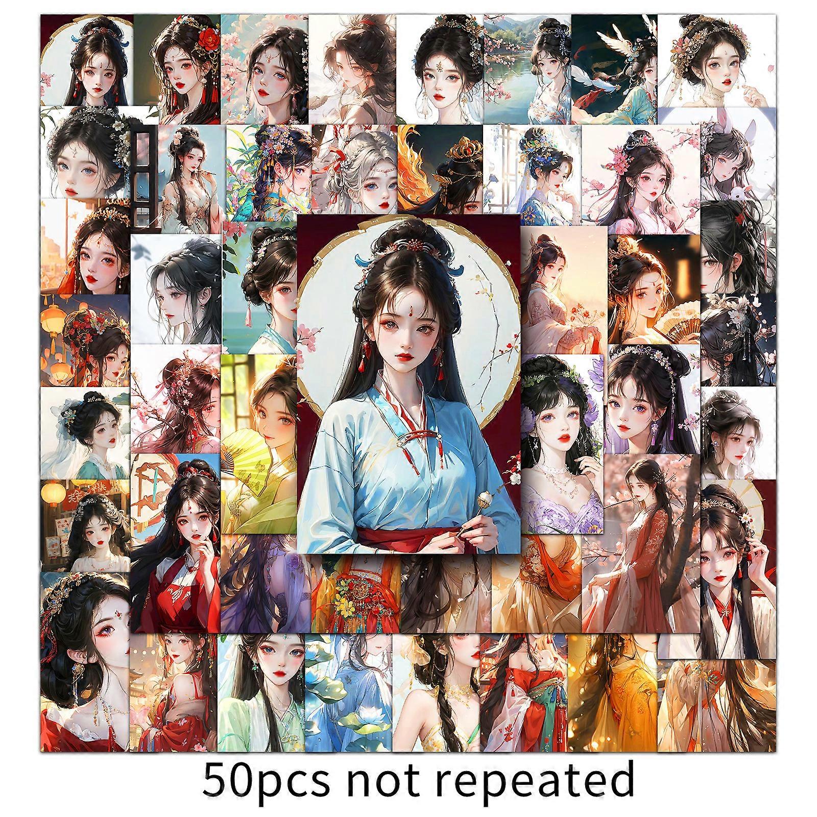 50 unique, trendy, waterproof decorative stickers for ancient Chinese style girls, perfect for water bottles, suitcases, phone cases, and gr