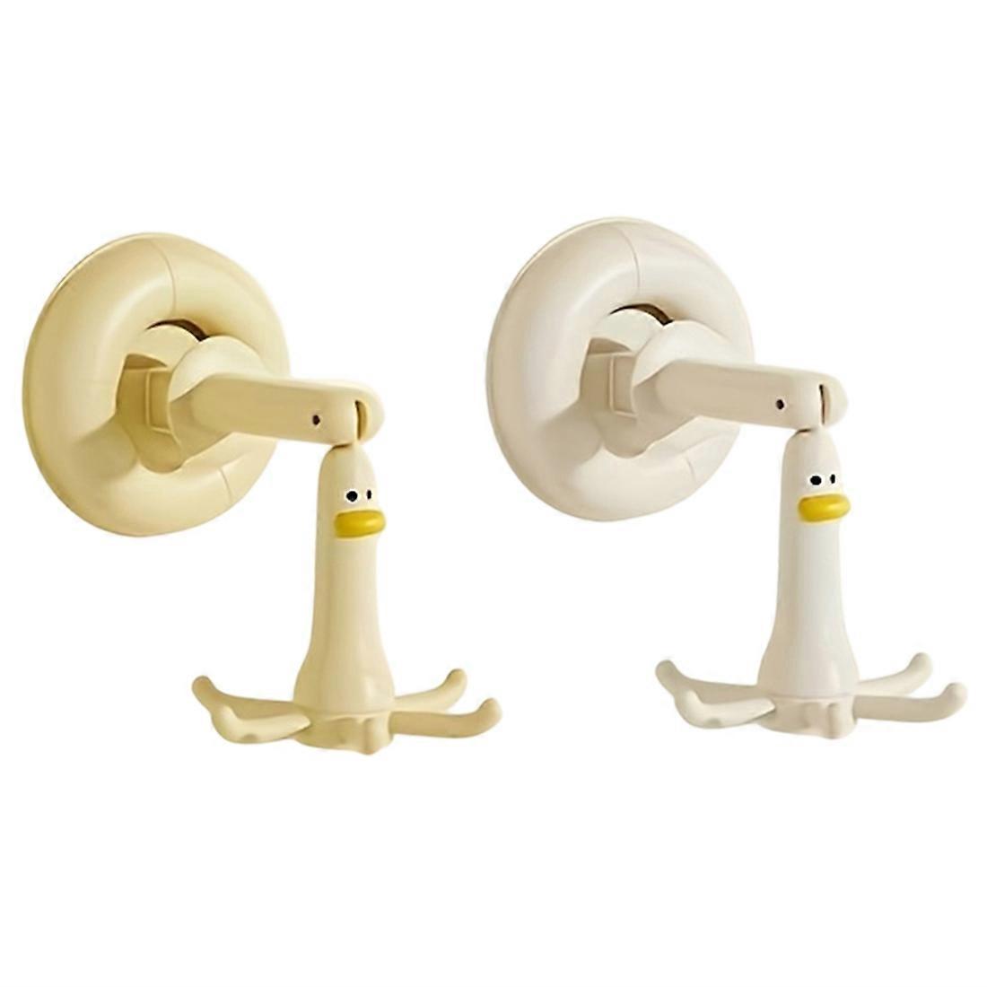 1pc Cartoon Duck Suction Cup Hook Six-Claw Rack 360° Dual-Axis Rotating No-Drill Kitchen Rack Bathroom Small Hanger Home