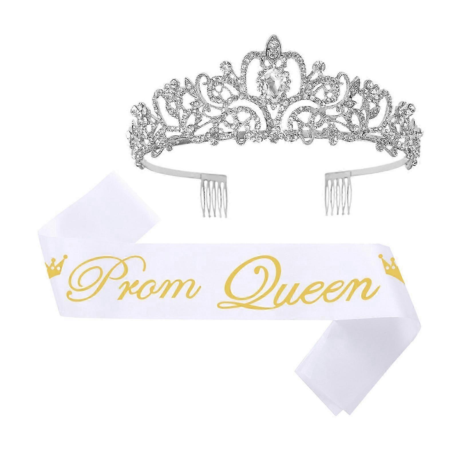 Premium Pageant Crowns Set Lightweight Metal Headpiece Soft Satins Detachable Sash for Bride Bridesmaid and Special