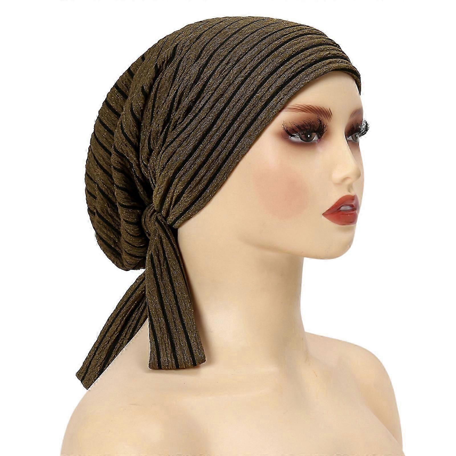 Chemotherapy Head Cover Fashionable Lined Scarf Hat Easy Wear Polyester Headwrap With Long Tail Design For Women khaki