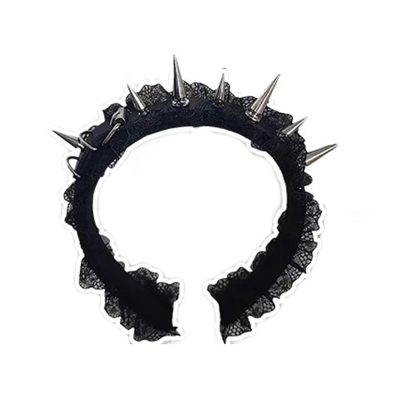 Punk Headpiece for Women Girl 2000s Lace Trim Metal Spikes Decoration Hairband Comfortable Headwear for Cosplay Party