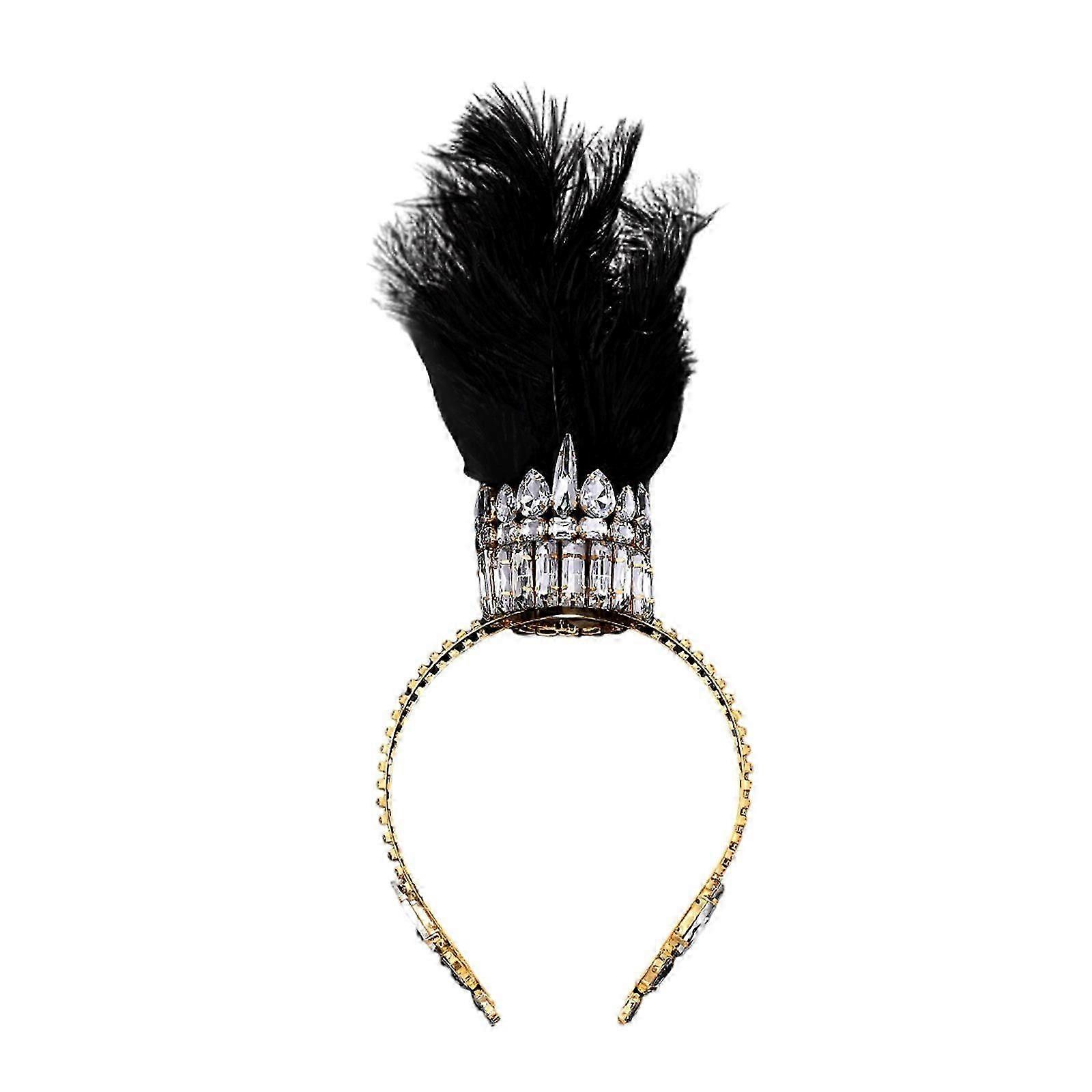 Stylish Feathered Headwear Rhinestones Crown Hairhoop For Carnivals Celebration And Party Enthusiasts Costume Crownpiece white feather silver