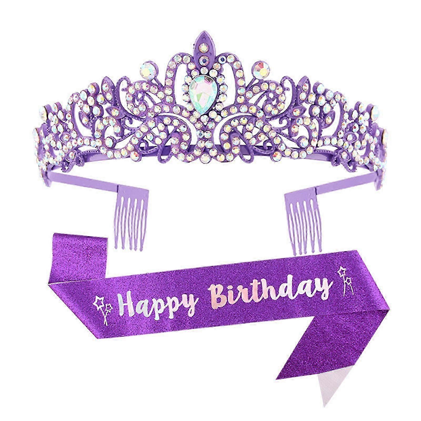 Fashionable 2pcs Rhinestones Tiaras Headband and Sash Hairpiece Hair Accesories for Womens Birthday Party Accessories Style 9