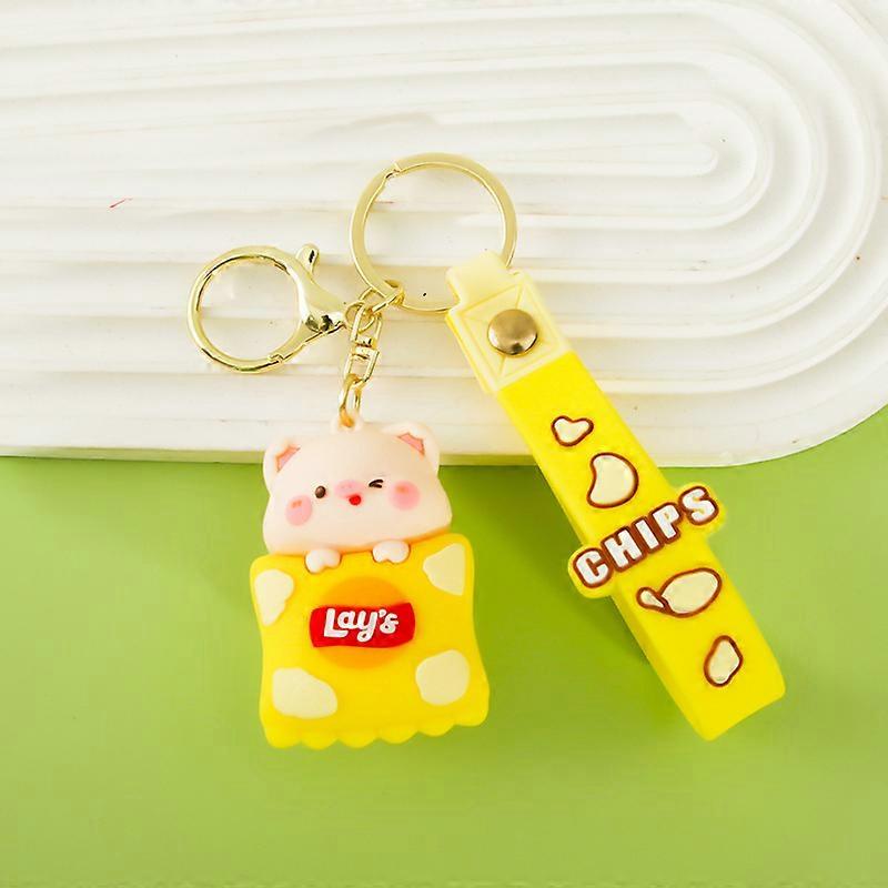 Creative potato chip animal keychain, cute girl pendant, cartoon doll, small gift