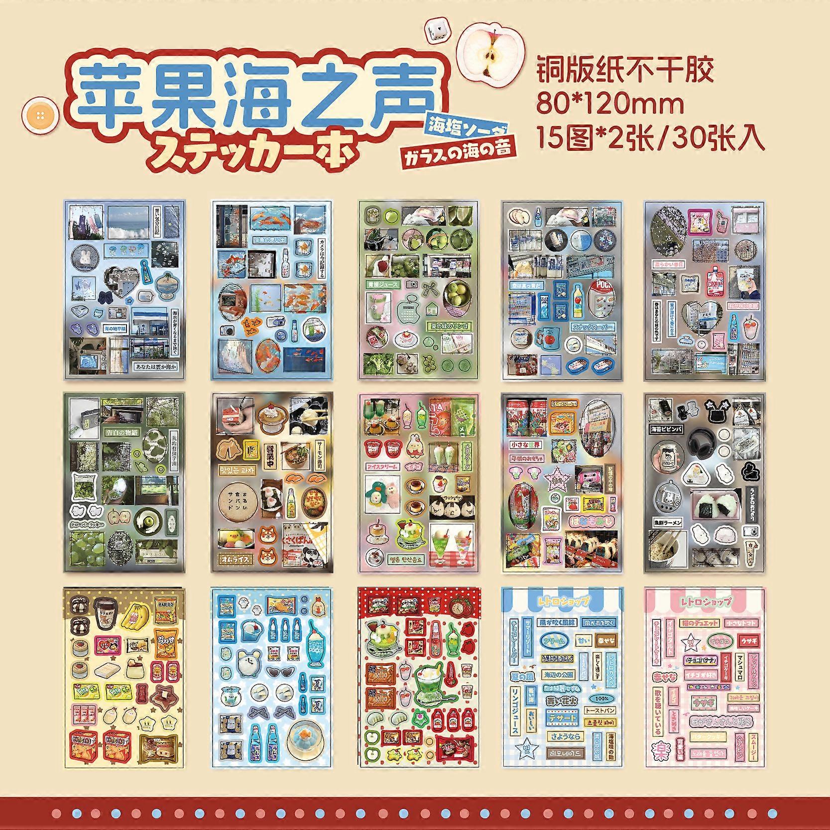 30 Sheets Kawaii Japanese Showa style cuisine glitter film die-cutting sticker book DIY handmade scrapbook aesthetic stationery