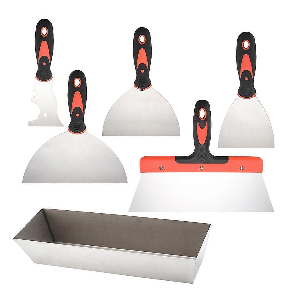 6 Piece Stainless Steel Paint Scraper Tool Set,14Inch Mud Pan for Repairing Drywall, Removing Wallpaper, Applying Putty