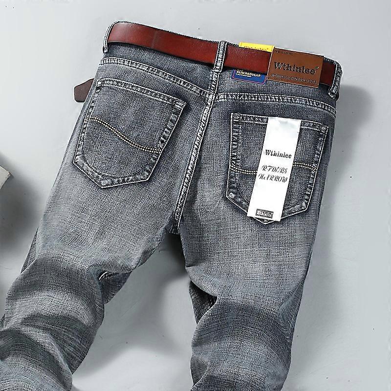 Spring Autumn Business Men Jeans Casual Straight Stretch Fashion Classic Black Sky Blue Grey Work Denim Trousers Brand Clothing