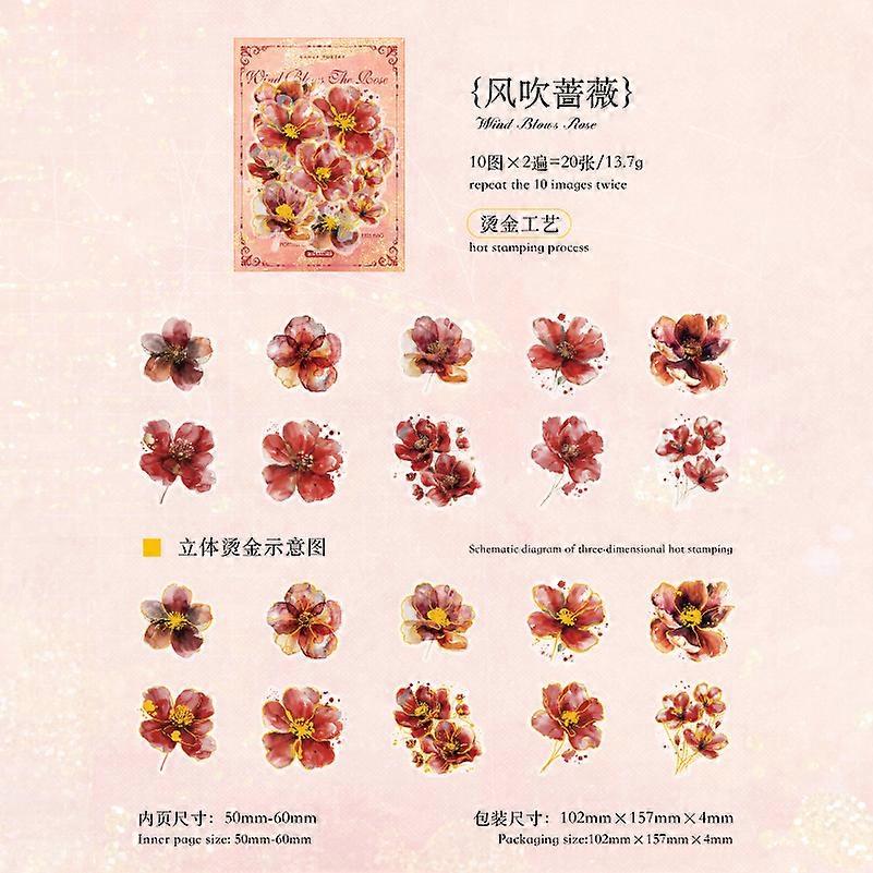 20 Pcs Vintage Plant Flower PET Sticker Pack Decoration Material Handbook Creative DIY Scrapbooking Supplies Stickers Stationery