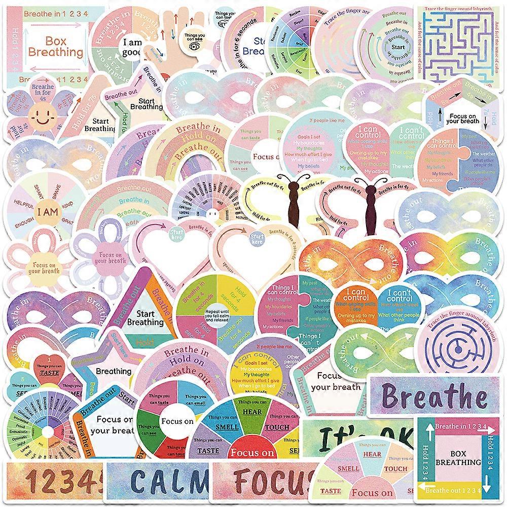 60pcs Cartoon Calm Sensory Stickers Rainbow Wind Warm Sooth Breathe Decal DIY Scrapbook Journal Phone Suitcase Stickers For Teen