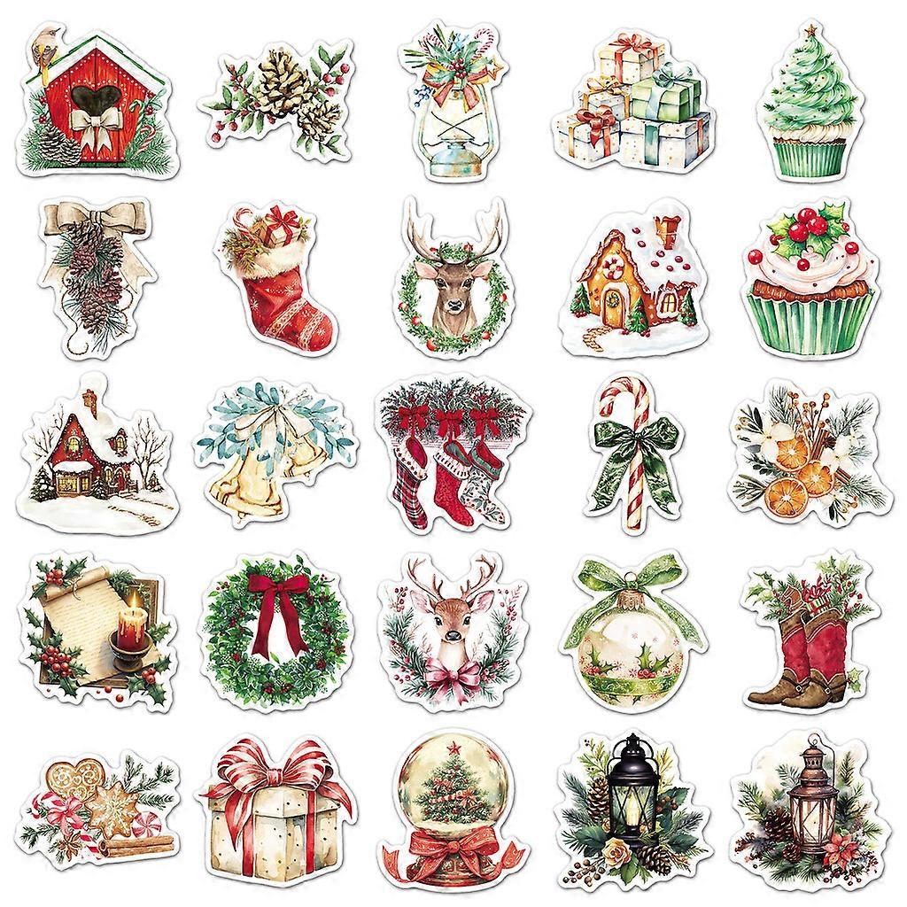 50 Pieces Vintage Watercolor Christmas Decorative Stickers - Creative Holiday Christmas for Journals LanLanStickersWorld Store
