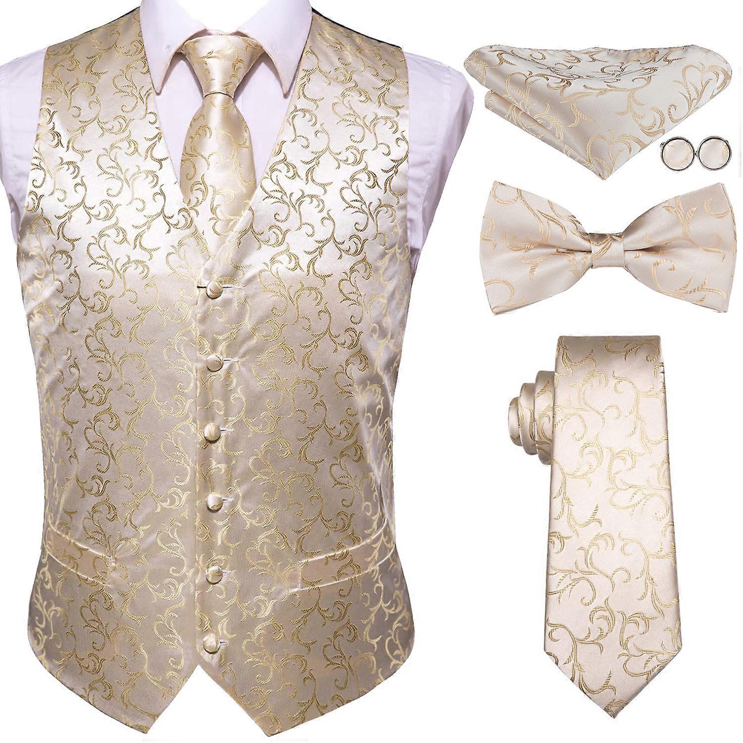 Hi-Tie Brand Silk Mens Vests Red Blue Green Gold Waistcoat Tie Bowtie Hanky Cufflinks Set Waist Jacket For Men Wedding Office