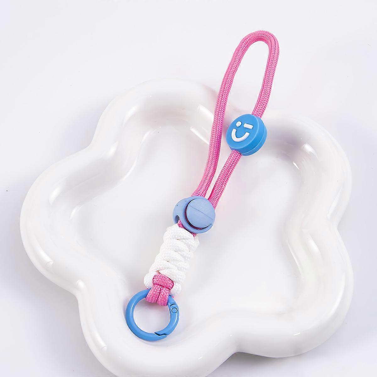 Short mobile phone lanyard with diamond knot smiley face color-block knotted braided lanyard, plush keychain, anti-loss lanyard accessory.