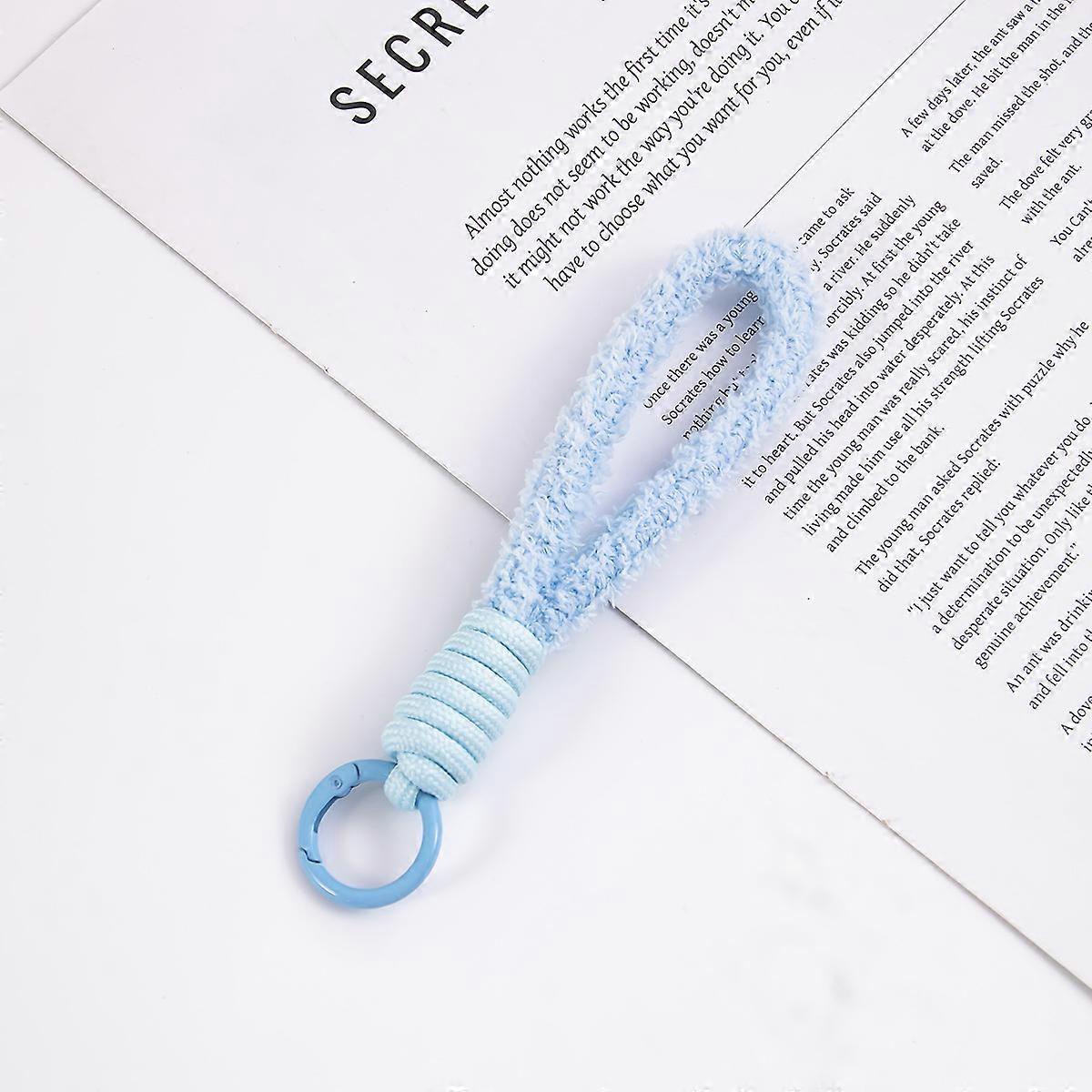 Plush phone lanyard, short, color-blocked, knotted braided lanyard, plush keychain lanyard, anti-loss lanyard.