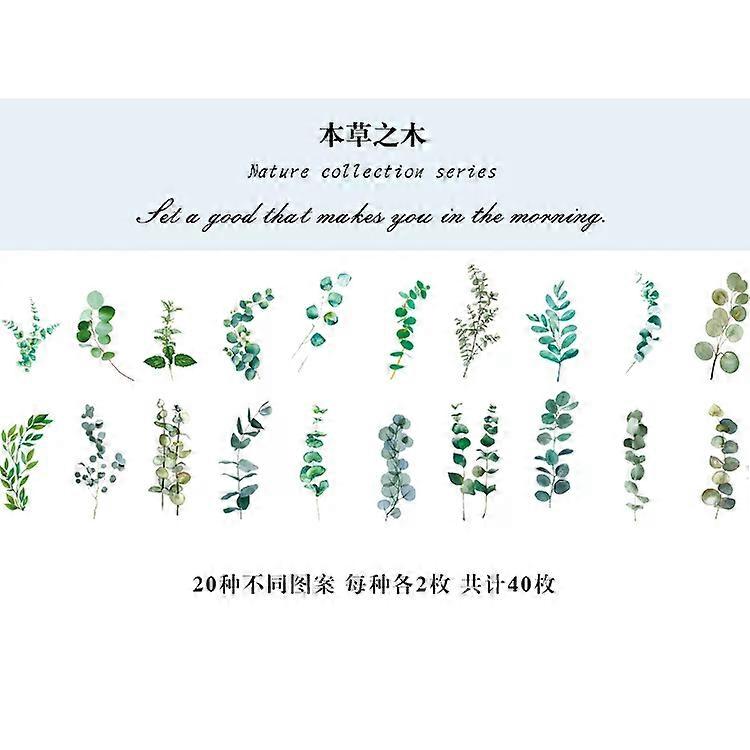 Journamm 40pcs Natural Stickers Journaling Stationery Transparent PET Material Flowers Leaves Plants Deco Stickers