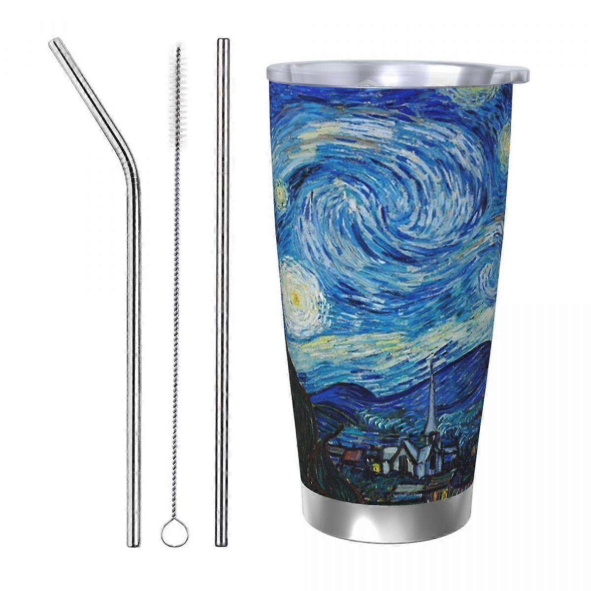 The Starry Night By Vincent Van Gogh Stainless Steel Tumbler Vacuum Insulated Mug Thermal Cold Cup Straws With Lid 20oz