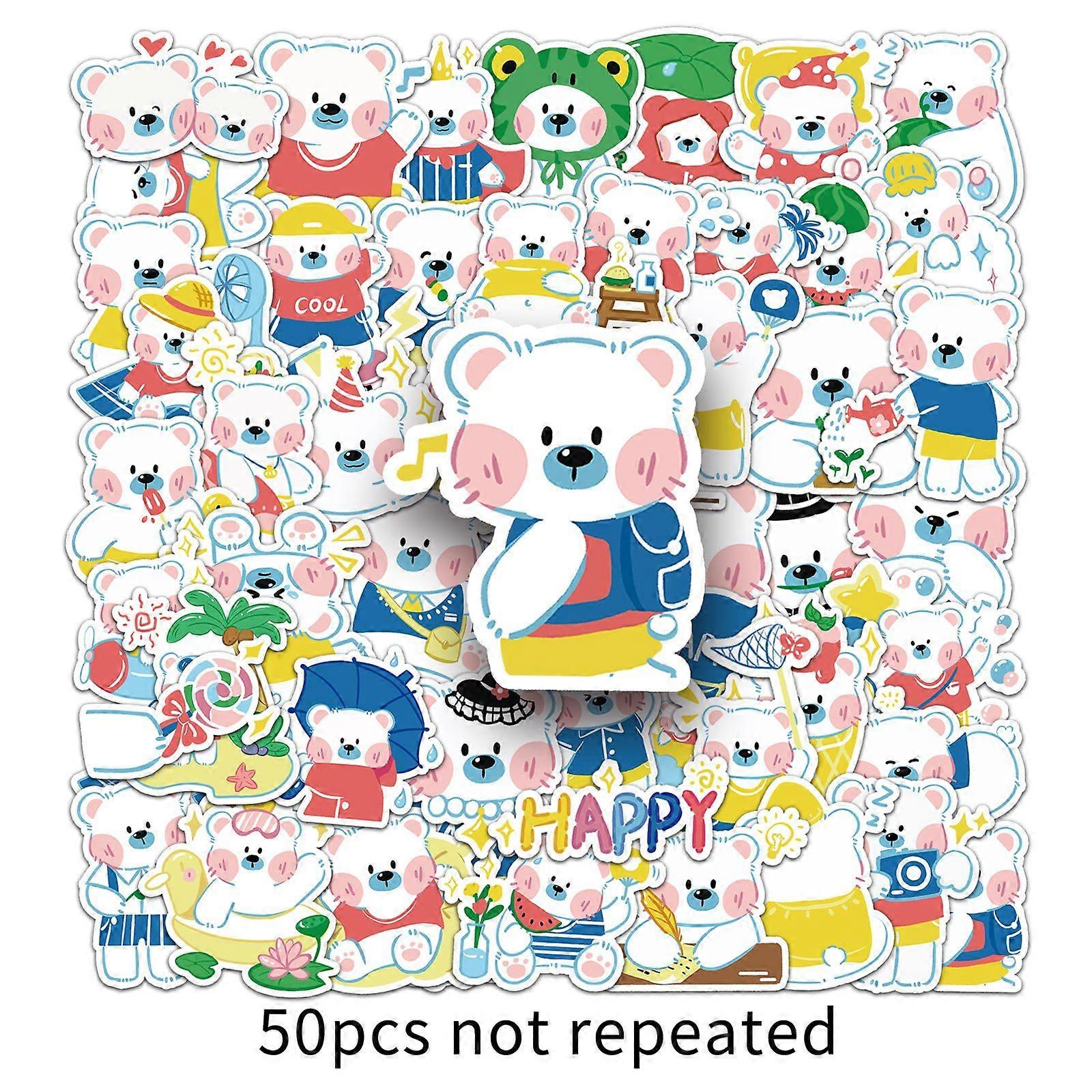 50 Original Cute Cartoon Little White Bear Stickers for Kids' Journals, Skateboards, Water Bottles, and Luggage