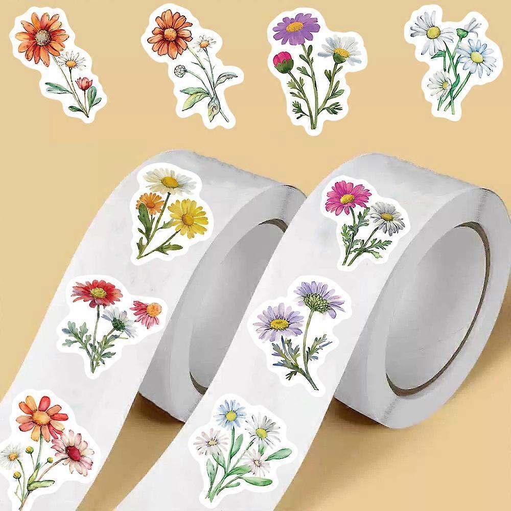 500PCS Daisy wildflowers Roll Stickers Colorful Cartoon Painted Flowers Scrapbooking Coffee Phone Art Picture Luggage Sticker