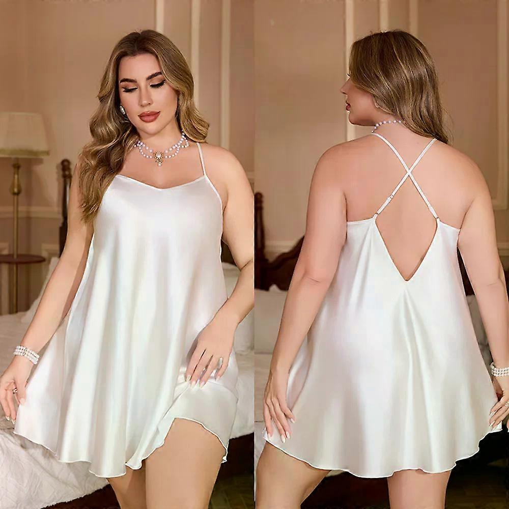 Female Sleepwear Plus Size White Silk Satin Robe Negligee Embroidery Bride Wedding Dress Kimono Bathrobe Gown Loose Home Wear