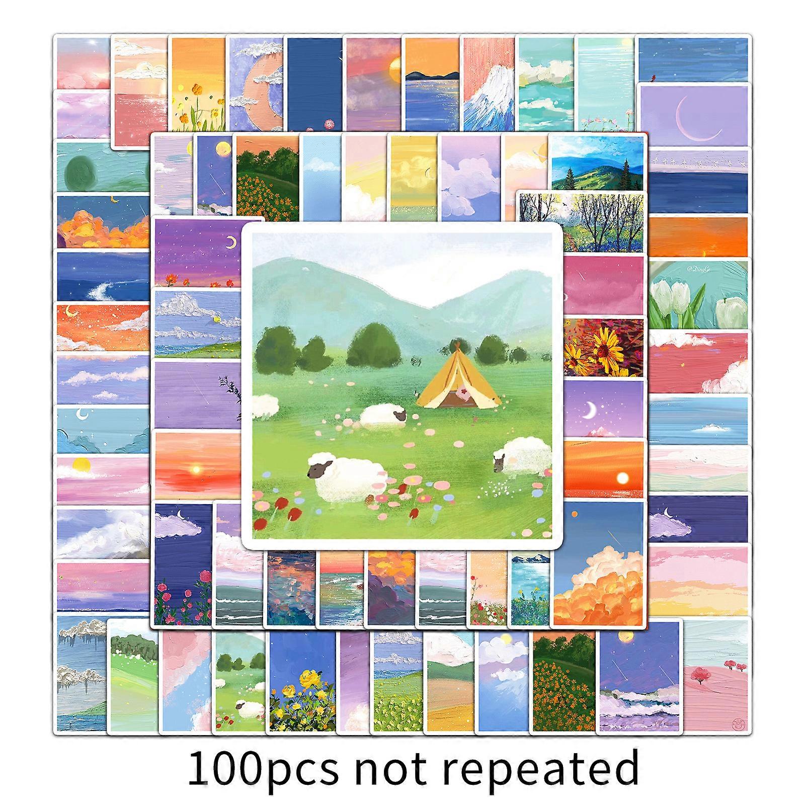100 landscape oil paintings, graffiti, cartoons, fresh and cute Instagram-style stationery, Guka DIY skateboard and suitcase stickers