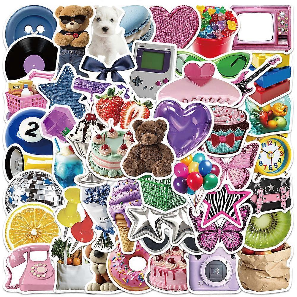 50pcs Y2K Aesthetic Graffiti Sticker Cartoon Cake Ice cream Biscuit Decal DIY Notebook Diary Luggage Envelope Decorative Sticker