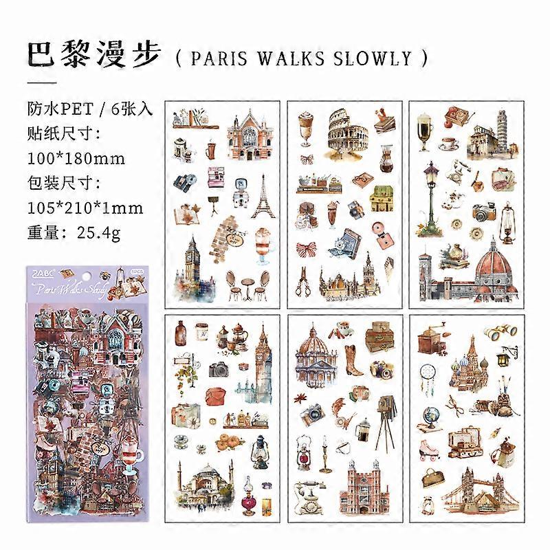 JIANQI 6pcs Literary Retro Stickers PET Materials DIY Scrapbooking Art Collage Stationery Planner Decor Diary Stickers