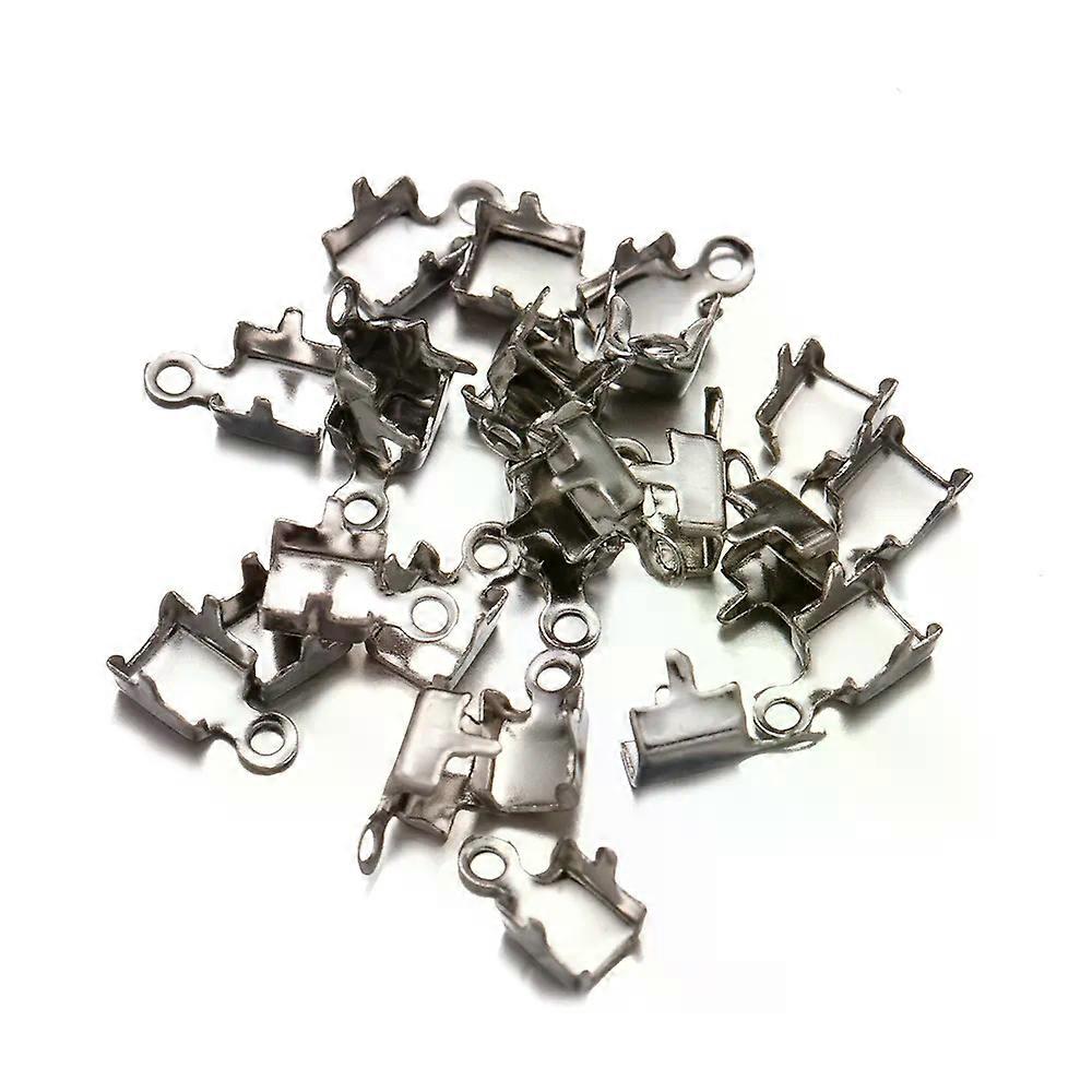 50Pcs Stainless Steel Gold Crimp Trim End Beads Connectors Clasp Tips Fastener DIY Necklace Rhinestone Chain Jewelry Making