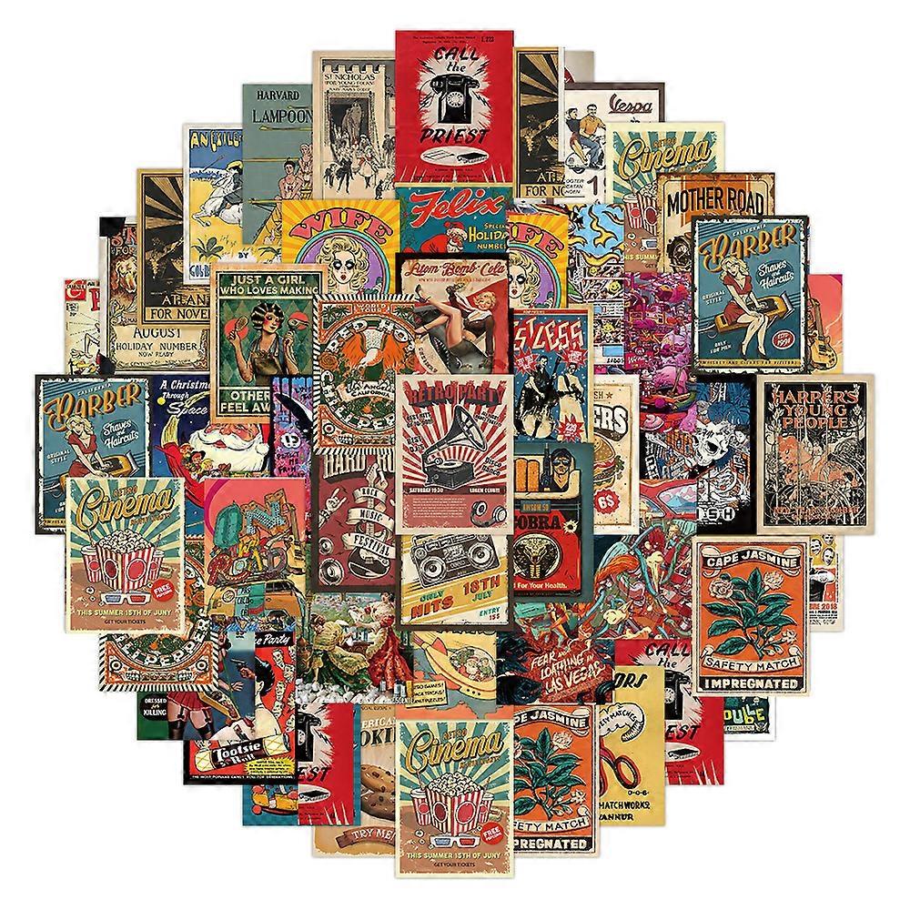 10/30/60PCS Retro American Style Vintage Poster Cartoon Stickers DIY Laptop Luggage Skateboard Graffiti Decals Fun for Kid Gift