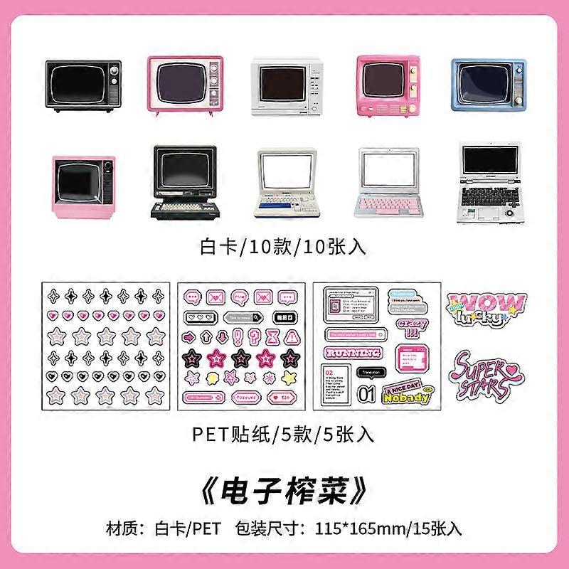 15pcs Kawaii Ins Electronic Memory Stickers Material Pack DIY Diary Phone Case Handmade Scrapbook Aesthetic Stationery Stickers
