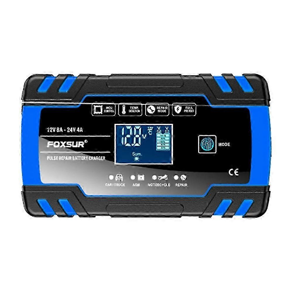 Suitable For Foxsur Motorcycle Battery Charger 12V 8A 24V 4A Automatic Pulse Repair Lcd Smart Charger Eu Plug