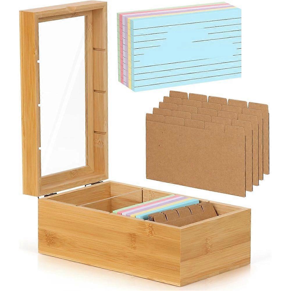 Bamboo Index Card Organizer,3x5 Index Card Holder Box with Dividers,Recipe Box with Lid,4 Compartme