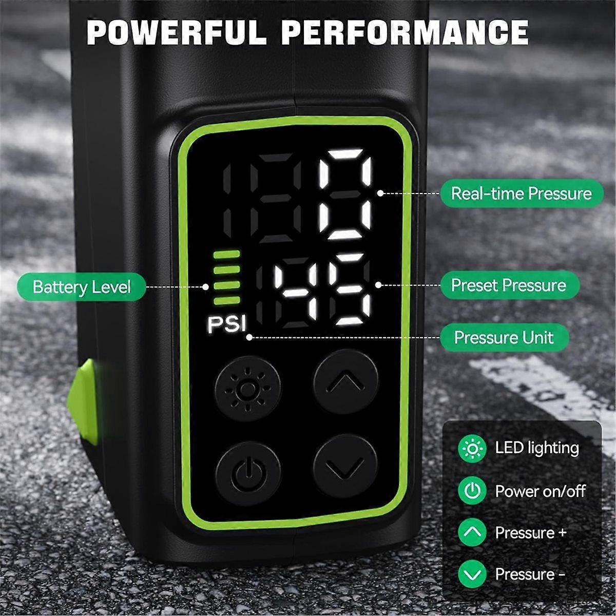 Digital pressure gauge shows preset and real-time PSI for accurate inflation. Auto-stop function prevents over-inflation-set desired pressure and walk away. Fits in jersey pocket electric bike pump, backpack, or saddlebag. Ideal for emergency repairs during rides. No more carrying bulky pumps that add unnecessary weight to your cycling gear. Powerful enough for e-bikes and fat bikes. Get back on the road quickly without manual pumping fatigue. Recharge via power bank during long rides. Never get stranded with a dead pump. Works with Presta and Schrader valves without adapters. Includes extended air hose for motorcycles, cars, and sports balls. Flexible hose allows inflation from any angle. One pump solves all your inflation needs. Color: Black Material: ABS+PC Package Contents: 1*Portable Air Compressor kit Only the above package content, other products are not included. Note: Light reflection and different displays may cause the color of the item in the picture a little different from the real thing. The measurement allowed error is +/- 1-3cm.