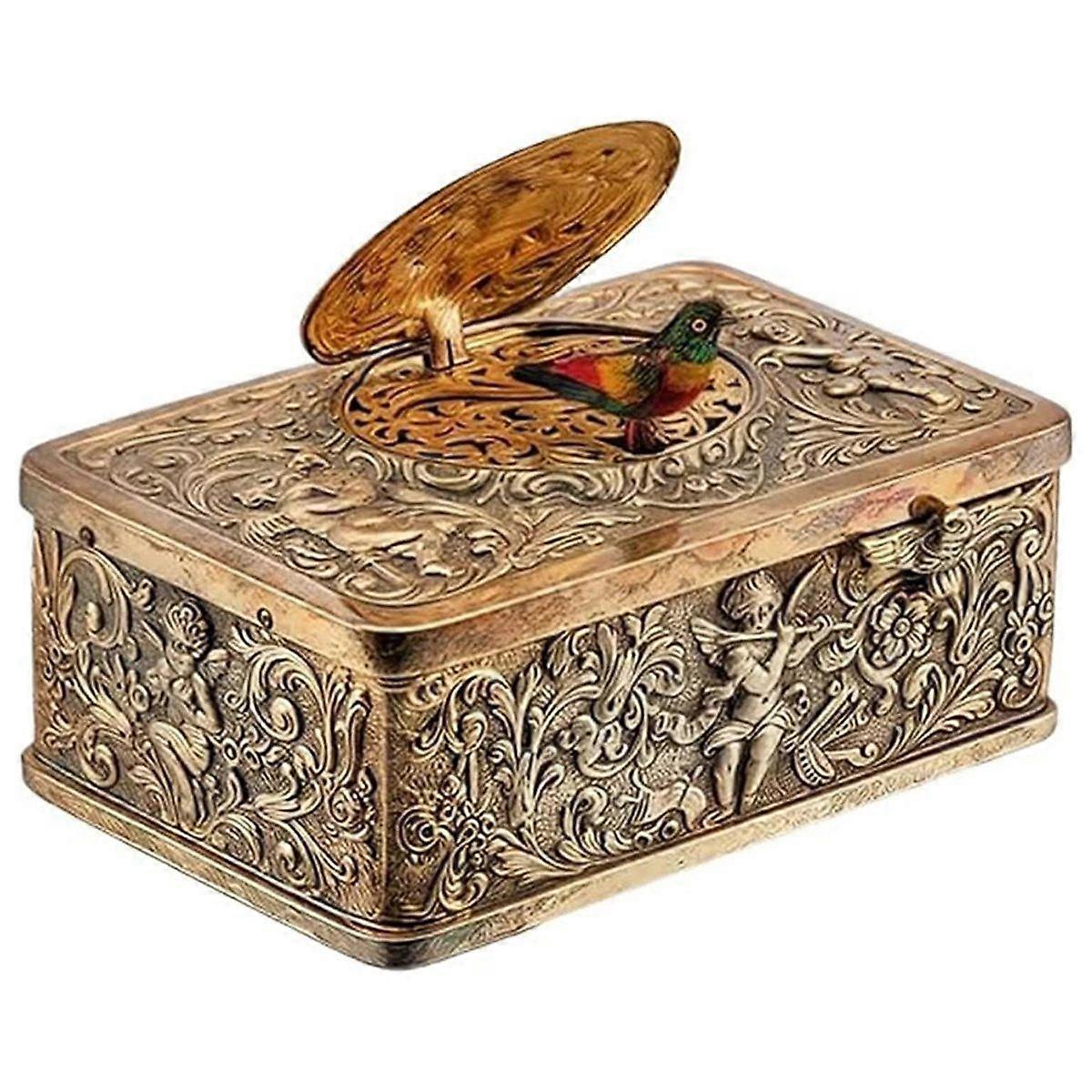 3D Embossed Bird Music Box, Alloy Material with Embossed , European Vintage Art Collectible(No Rota