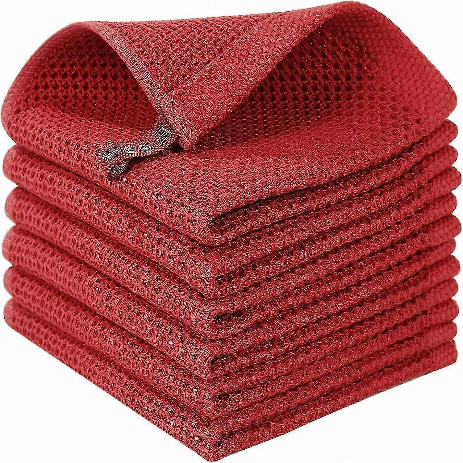6Pcs 34x34cm Cotton Waffle Weave Kitchen Dish Towels Quick Cleaning Fast Absorbing Rag with HangingDark RedDark red21 Edition 1218