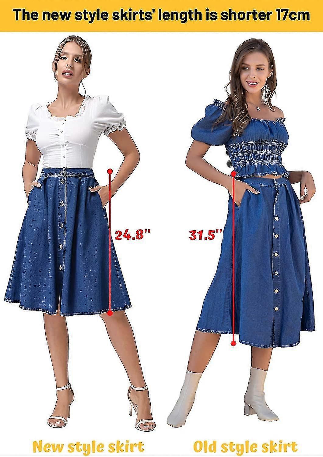 Maxi Skirt for Women with Pockets - Denim A-Line Long Skirt High Waist