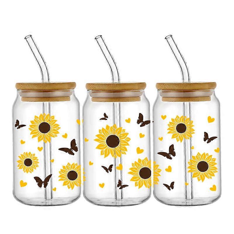 Beautiful Flower Sunflower UV DTF Cup Wrap For 16OZ Libbey Glass Can UV DTF Transfer Senior 3D Sticker Waterproof DIY