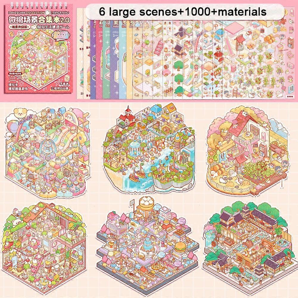 New PET Miniature Scene Collection Cartoon DIY 3D Pocket Cabin Scene Stickers 3D Visual Stacking Tent Sticker Decoration