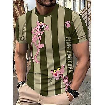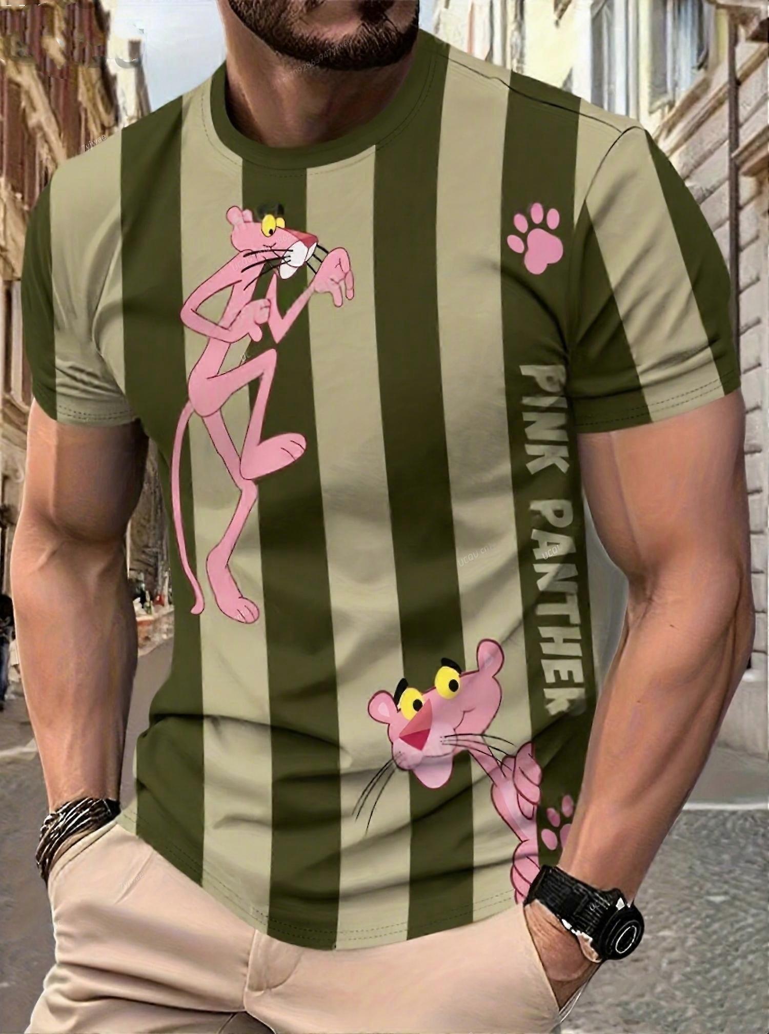 2025 Summer Men Pink Panther Stripe Graphic T Shirt Lightweight Quick Dry Men Short Sleeve Training Suit Outdoor Fitness Top