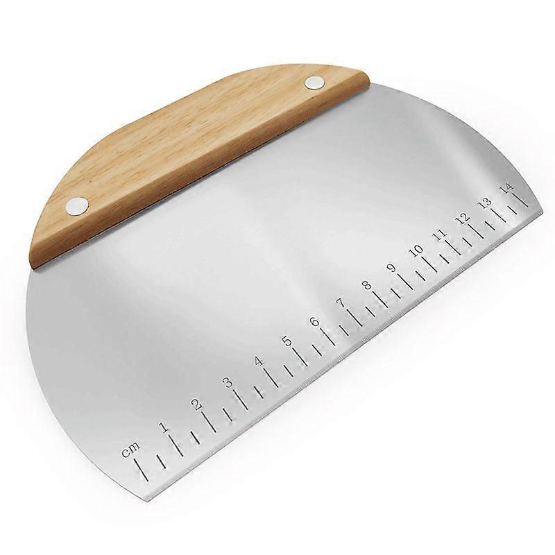 Dough Scraper, Stainless Steel Dough Pastry Scraper Cutter Chopper with Non-Slip Grip and Measurements for Kitchen Baking Tools (Wood Handle)