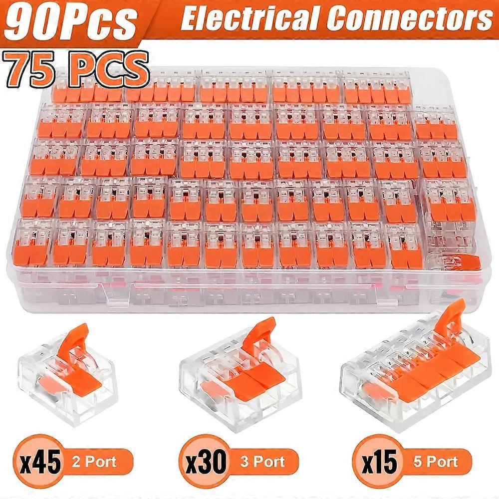 75-piece and 90-piece boxed quick lever type wire and cable connector kit, universal compact push-in terminal 250V/32A