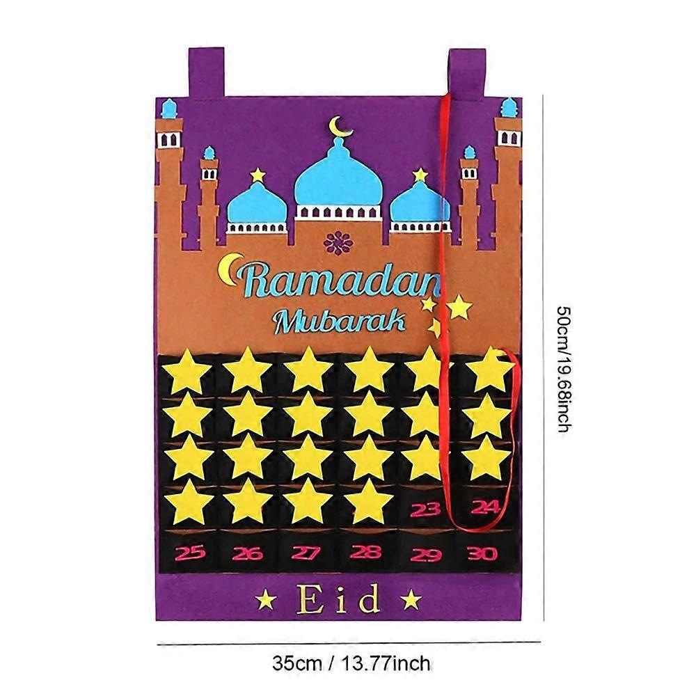 Ramadan Felt Calendar Hanging 2024 Eid 30 Days Countdown Mubarak Kareem Advent Calendar Pocket Muslim Islamic Home Decor